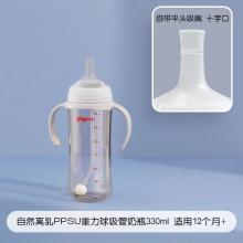 贝亲自然离乳PPSU重力球吸管奶瓶12M+十字孔330ML AA253