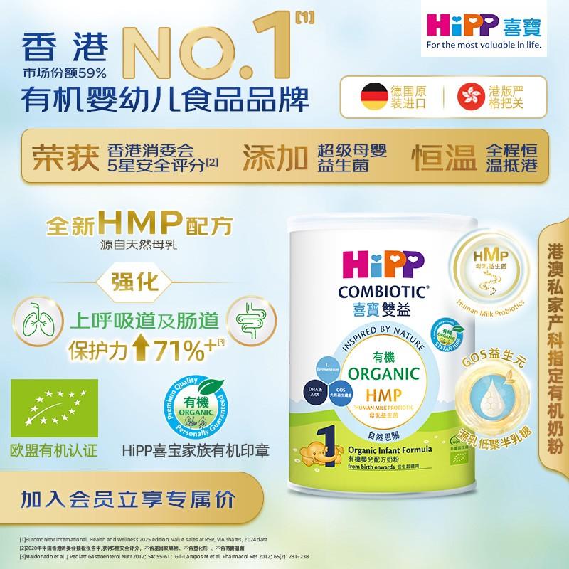 港版HiPP喜宝有机双益婴儿奶粉1段小罐350g 0-6个月
