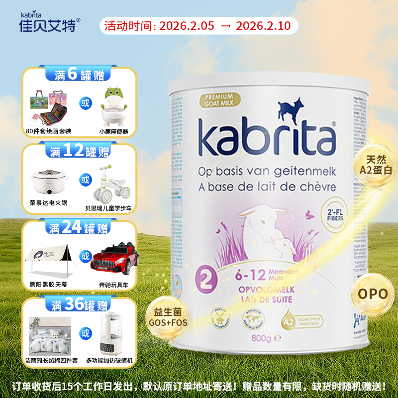 【新年买赠】荷兰版 kabrita佳贝艾特婴幼儿羊奶粉白金版2段6-12个月800g/罐