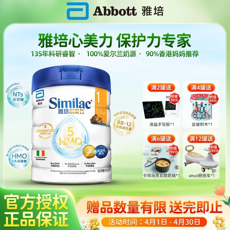 跨境商品>【超值满赠】品牌直供-雅培similac港版心美力5HMO婴幼儿奶粉1段 850g