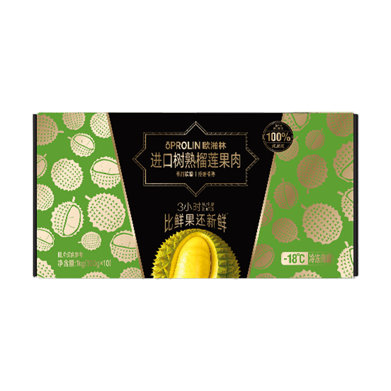 国内发货 【顺丰冰袋泡沫箱】欧湐林泰国金枕无核榴莲冻肉小金条100g*10盒 【生鲜不支持7天无理由退货】