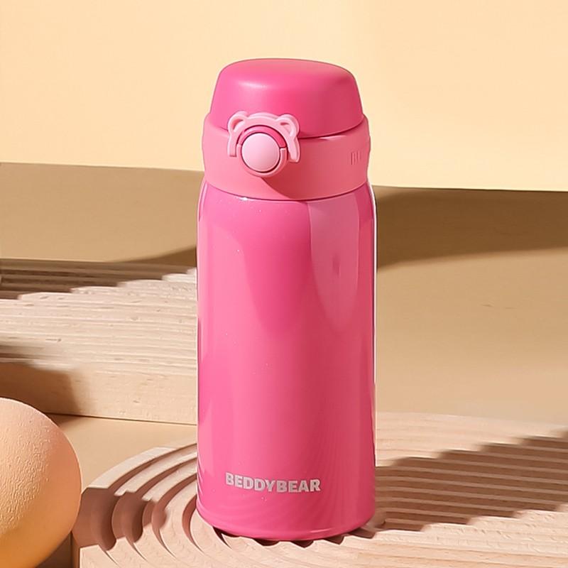 杯具熊短款纯色弹跳保温杯-红色380ml