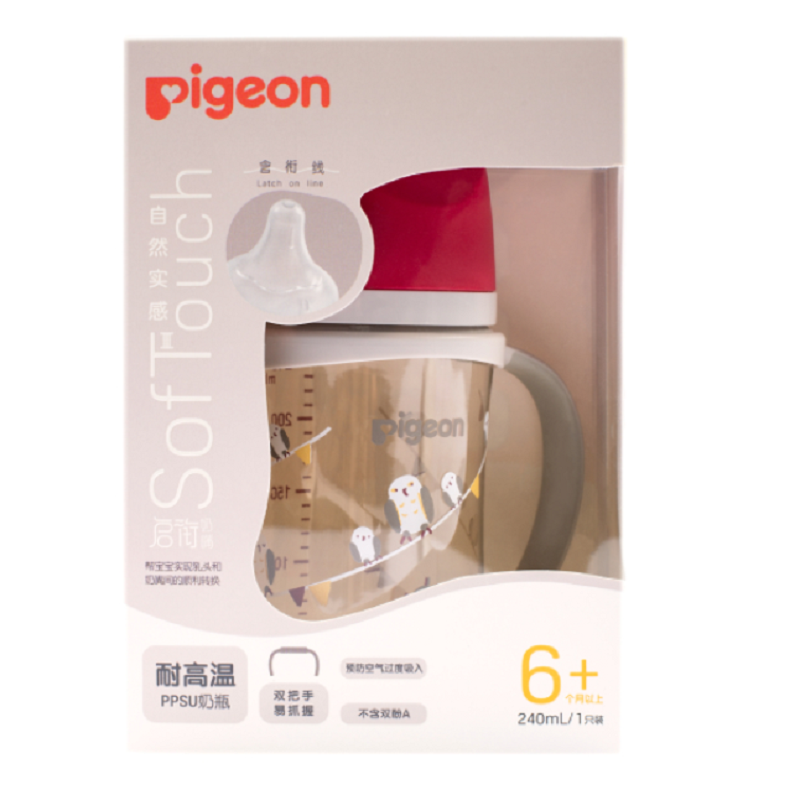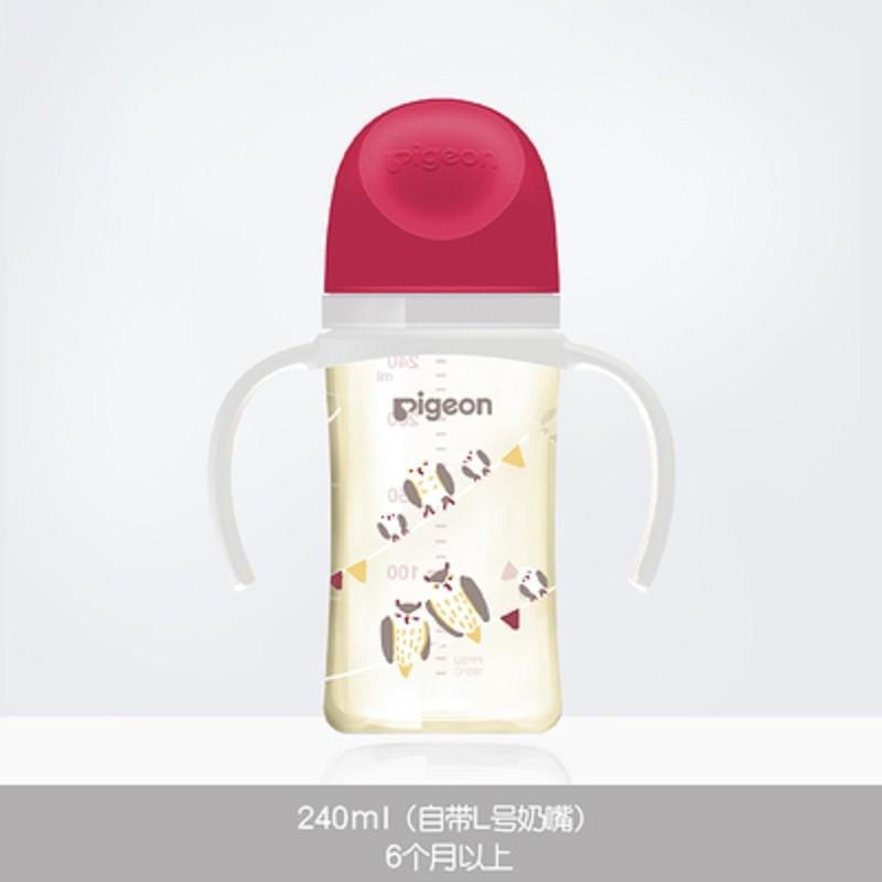 贝亲AA221自然实感三代宽口径彩绘PPSU双把手奶瓶240ml(L号奶嘴)-猫头鹰