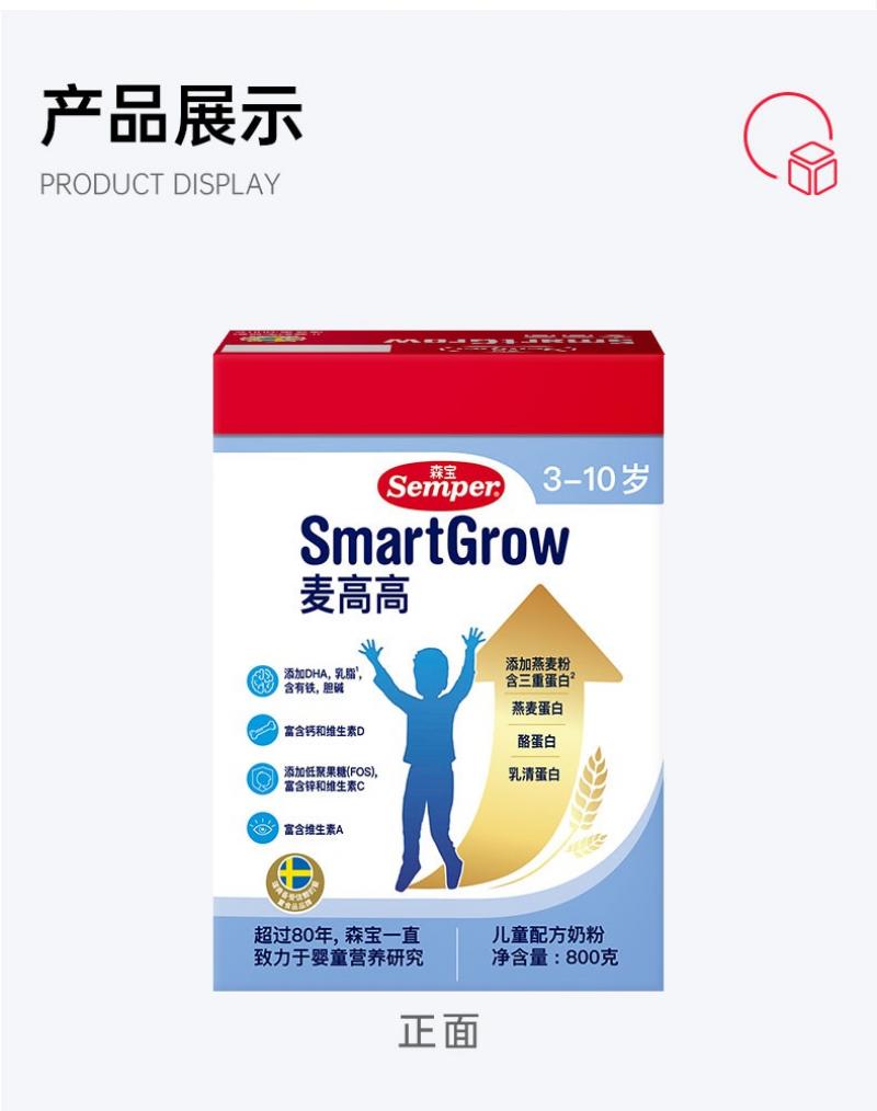 跨境商品 Semper 森宝麦高高儿童配方奶粉 800g