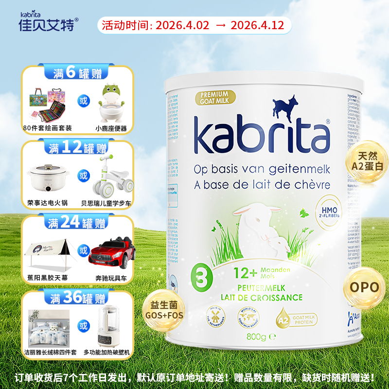 荷兰版 Kabrita佳贝艾特婴幼儿羊奶粉白金版3段1岁以上 800g/罐