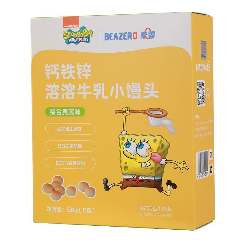 国内发货 未零海绵宝宝钙铁锌溶溶牛乳小馒头(综合果蔬味) 50g