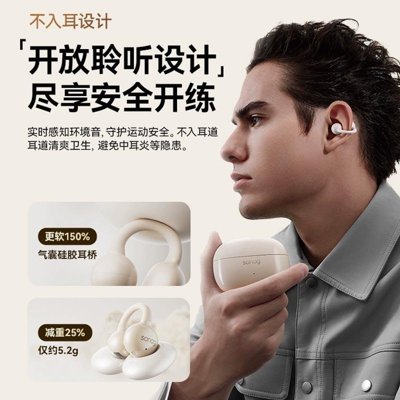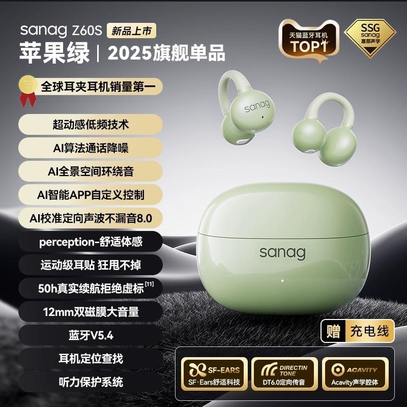 塞那sanag 新款无线蓝牙开放耳夹气骨传导运动耳机Z60顶配版-苹果绿