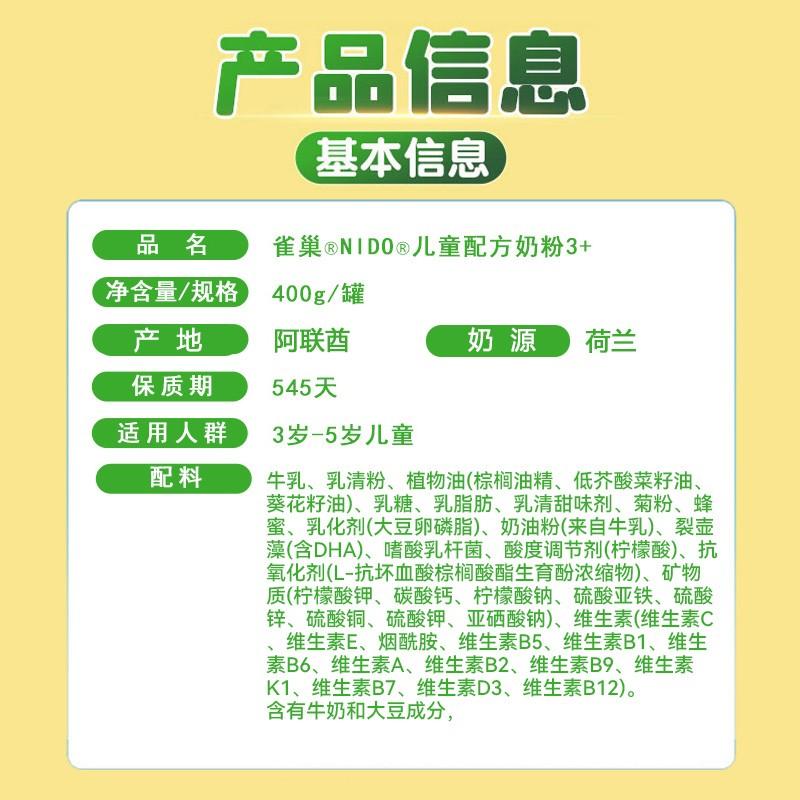 保税直供 雀巢NIDO 3+儿童奶粉400g